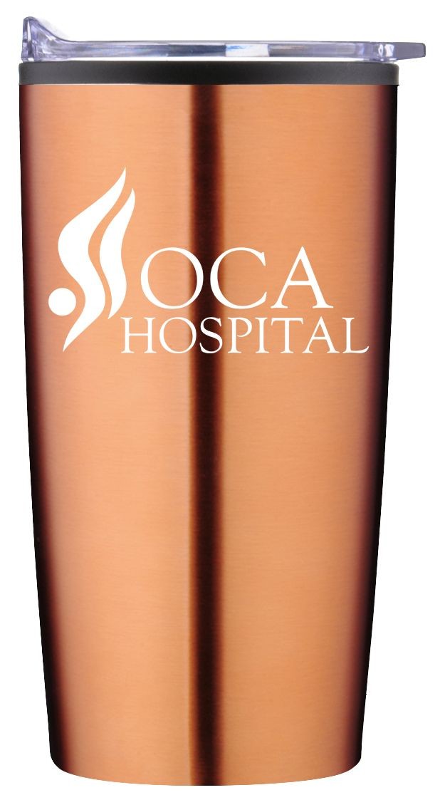 Get your business on the move with this eye-catching travel tumbler! This 20 oz BPA/Phthalate-free and lead-free tumbler keeps drinks hot or cold for hours!